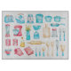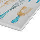 Plaque de découpe de cuisine en verre avec image d'ustensiles de cuisine en aquarelles.