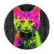 L'art du chat néon attrayant avec des roses et des verts vibrants contre un arrière - plan noir foncé. Une pièce moderne et unique pour les amoureux de les chats (Ce design Fabriqué avec de l'IA). Commandez dès aujourd'hui et offrez-vous la joie du shopping !