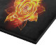 Rose en fleurs issue du feu et de la flamme sur fond noir.