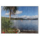 Planche À Découper Soleil en Ecosse. Baie avec palmiers et yachts