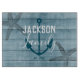 Bois bleu rustique et élégant. Poignée de timbre Starfish avec un graphique d'ancrage solide. Nom de famille personnalisé en gras sans serif police et typographie de famille de script chic. Tout le texte est réglable. Belle conception pour maison de plage, maison de vacances, bateau, ou décoration de maison à thème nautique.