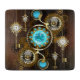 Turquoise lenses with antique watch with brass gears and golden keys on rusty, brown background. Steampunk style.