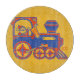 Père Noël Vit ! Les cartes de Noël de père Noël Train et autres cadeaux de vacances présentent une création unique de Keller Kard de Père Noël dans son train bleu et rouge contre un arrière - plan jaune orange et tenant un drapeau avec les mots, Père Noël Lives. Décorez votre maison, les boîtes aux lettres de votre ami ou remplissez ces boîtes sous l’arbre cette saison de fêtes avec un design vintage d’impression par blocs coupés à la main en linoléum. Père Noël Vit ! Prouvez-le à vos amis et votre famille avec notre Père Noël Train original!