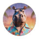 Funny Hippopotamus portant une chemise hawaïenne sur une belle plage.