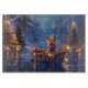 Jetez un coup d'oeil à la magie de la saison des Fêtes avec cette illustration magnifiquement détaillée, montrant un chien fier assis dans un bateau à la décoration festive, glissant à travers un lac serein de Noël. Les lumières scintillantes des pins voisins se reflètent dans l'eau, projetant une lumière chaude et festive qui renforce l'ambiance cosy. Des ornements pendent des côtés du bateau, tandis que des lanternes brillantes éclairent le chemin, créant une scène qui capture l'essence véritable de la chaleur et de la joie de Noël. Cette oeuvre nostalgique apporte une touche de magie de vacances à tout espace, parfait pour ceux qui chérissent l'esprit de la saison.