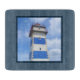 Nautical themed design with watercolor lighthouse decoration in dark blue frame. C'est possible to change the background color and to add different one to the design with your choice.
