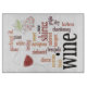 Wine Word Cloud Design Glass Cutting Board, avec des mots et des images liés au vin..