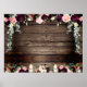 Un panneau d'affiche extra large de 54 x 40 pouces avec un fond en bois de planche de grange récupéré de style rustique vintage. Un rameau de florales bordeaux foncé et rose blush cascade parmi des guirlandes de feuillage argenté et des bouquets de fleurs romantiques éclairés aux chandelles, explosant de pivoines et de jets de fleurs artistiques. Cette affiche est vierge afin que vous puissiez y insérer votre texte et l'utiliser pour n'importe quelle occasion.