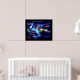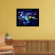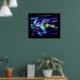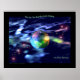 Poster mit meinem digitalen Kunstwerk des Planeten Erde im Weltraum umgeben von bunten Polarlichtern, Sternen und Musiknoten mit Text "der Tag, an dem die Erde aufhört zu singen, hören wir auf zu tanzen".