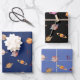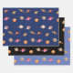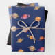 Planet Saturn Farbblau und Schwarz Geschenkpapier Set