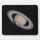 Eine schöne Aussicht auf den Saturn und seine Ringe, wie sie vom NASA Hubble Weltraumteleskop beobachtet wurde. Beachten Sie das Polarlicht am Südpol des Saturns. Ein Sternenhimmel-Hintergrund wurde hinzugefügt. Perfektes Geschenk für Astronomen, Studenten, Raumfahrer und alle, die sich für Wissenschaft, Astronomie oder Weltraum interessieren.