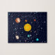 Cartoonillustration des Solarsystems und der Planeten um Sonne.