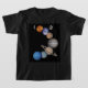 Oben nach unten: Merkur, Venus, Erde mit Mond, Mars, Jupiter, Saturn, Uranus, Neptun.