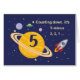 Turning 5 est hors de ce monde ! Bateau à fusée, planètes et étoiles remplissent à l'avant de la carte avec le message que vous comptez pour dire Joyeux Anniversaire!
