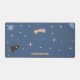 Un tapis spatial avec planètes, étoiles, étoiles tournantes et fusée en dessin animé sur un arrière - plan bleu pour la chambre d'un enfant. Il pourrait être utilisé comme tapis de bureau pour bureau, si vous aimez l'espace et les galaxies !