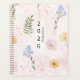 Elegant 2026 Daily Planner with a soft pink watercolor floral cover featuring delicate yellow and blue flowers, forget-me-nots, and blush pink splashes. Perfect for women who love romantic, feminine, and refreshing designs. Stay organized in style with this cute and inspiring planner – ideal for daily notes, goals, and motivation!