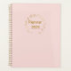 A Minimal Planner for Focused Living . Elegant minimalist 2026 daily planner cover with a delicate golden leaf wreath framing "Planner 2026" in sophisticated typography. Soft pastel pink background evokes a calming, boho vibe—perfect for organization, goal setting, and personal growth in the new year.
