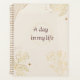 A Minimal Planner for Focused Living . Elegant daily planner cover featuring the title "A Day in My Life" in beautiful handwritten script, surrounded by a golden sunburst. Delicate gold line art of flowers, leaves, berries, and sparkling stars decorates the corners on a soft beige textured background. This minimalist, boho-inspired design is perfect for journaling, daily planning, gratitude, or self-reflection. Ideal for anyone who wants a stylish and calming organizer to document their everyday moments in 2026 and beyond.