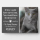 Si vous aviez un chat que vous chérissiez et aimiez, cette plaque commémorative moderne pour animaux de compagnie avec une photo de votre animal sur un fond gris qui peut être changé en n'importe quelle couleur, une citation de condoléances qui dit "Si l'amour pouvait vous sauver, Vous auriez vécu pour toujours.", un ornement d'empreinte de patte, le nom de votre animal et les dates. Cette plaque sur chevalet est un beau souvenir pour vous et votre famille pour toujours.