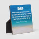 Montrez votre appréciation de cette Fête des pères avec cette plaque d'affichage personnalisée. Cette plaque a un simple arrière - plan de plage avec un message sentimental écrit dessus. Vous pouvez modifier l'ajout ou la modification du texte de ce produit à l'aide du modèle personnalisé. Cela fait un bon cadeau pour la Fête des pères, les anniversaires, ou toute autre occasion quand vous voulez célébrer votre père.