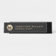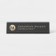Elevez votre bureau avec cette luxueuse plaque de nom de bureau noir et or avec un emblème de monogramme en métal brossé rond et nom en texte doré sur un arrière - plan noir solide. L'ajout parfait à tout cadre professionnel.