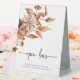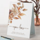 Panneau de la tente de table florale Automne. Cette enseigne élégante et rustique du bar ouvert est ornée d'une aquarelle peinte à la main, de feuilles orange brûlé et en terre cuite, de dahlias crème et beige, et de beaux roses de couleur rouille, parfaits pour un mariage d'automne ou d'automne !