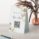 Un arrière - plan blanc chic. Décoré d'eucalyptus dorés aquarellés, sprigs. Personnalisez et ajoutez votre propre code QR à votre site Web avec le menu à barres