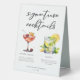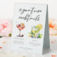 Ce panneau de tente de table de cocktails chic et design présente une typographie noire personnalisée au-dessus de 2 boissons et leurs ingrédients pour votre bar mariage. Une jolie Sangria d'été dans un verre à vin et un dessin de Mojito ajoutent une touche cool à votre menu du bar. Complétez avec les noms du couple et la date de leur réception.