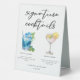 Cette enseigne de tentes à cocktails de marque côtière chic présente une typographie noire simple au-dessus de 2 boissons balnéaires et leurs ingrédients pour votre bar de mariage de plage. Un joli dessin de martini à la goutte de citron et de lagon bleu ajoute une touche cool à votre menu du bar. Complétez avec les noms du couple et la date de leur réception.