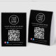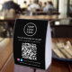 Donnez à votre entreprise une touche professionnelle et moderne avec ce présentoir de table personnalisé à code QR noir, conçu pour aider les clients à se connecter instantanément à votre marque. Parfait pour les salons, les spas, les cafés, les boutiques, les restaurants et les petites entreprises, cet affichage épuré noir et blanc permet aux clients de scanner facilement pour afficher les services, les tarifs, les menus ou les liens de réservation. Imprimé sur du papier de haute qualité et abordable, ce présentoir léger est idéal pour les comptoirs d'accueil, les comptoirs et les stands de salons professionnels. Ajoutez votre logo, le nom de votre entreprise, vos identifiants de médias sociaux Facebook et Instagram, ainsi que votre code QR pour créer un affichage cohérent et marqué qui stimule l'engagement en personne et en ligne.