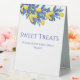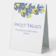 Améliorez votre décoration de réception de mariage avec cette Tabletop Sweet Traitements moderne et élégant Signez avec un flair méditerranéen. Ce panneau magnifiquement conçu se marie harmonieusement à votre zestin et à votre thème vibrant, ajoutant une touche de luminosité à votre table. Explorez la collection pour un mariage à thème magnifique.
