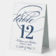 Plaque De Table Élégant Mariage de script de calligraphie bleu mar