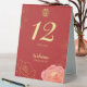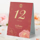 Un élégant panneau de tente numéro de table mariage chinois pivoine avec une fleur de pivoine rose et or classique avec un double caractère xi.