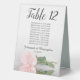 Ces panneaux de numéro de table de tente ne sont pas seulement beaux, ils incluent même une liste de noms pour les invités à chaque table, ce qui permet à vos invités de trouver facilement leur siège à votre réception de mariage. Le design est à la fois élégant et romantique, avec un rose simple rose vif couché sur son côté réfléchissant dans l'eau avec des vagues et des ondulations. Le titre est en calligraphie de script en dentelle avec des chiffres en gras afin que vos invités puissent facilement trouver la bonne table. Il y a de la place pour les noms du couple et la date du mariage.