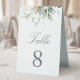 Beaux numéros de table de mariage avec eucalyptus aquarelle et feuilles dorées. Choix parfait pour les mariages en plein air.