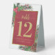 Make it easy for your guests to find their seats with these beautiful holiday or Christmas themed table number tent signs. The design features elegant script calligraphy with the table number prominently displayed on a deep marbled crimson red background inside of a golden faux foil frame adorned with festive hand painted watercolor holly leaves, berries, pine branches and pinecones. There is room for the names of the couple and wedding date at the bottom. Simple way to add to your reception decor while making it easy for your guests to find their tables. NOTE: Each number must be customized separately.
