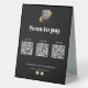 Vos clients se sentiront confiants d'acheter lorsque vous offrez des options de paiement sans contact. Ce simple panneau noir avec texte blanc est le choix idéal pour votre entreprise. Vous personnaliserez avec les trois applications de paiement que vous utilisez. Commencez par ajouter votre logo suivi des trois applications de paiement. Vous allez lister le nom de l'application, comme Paypal, Google pay, ou Venmo et les codes QR pour ces applications. Votre client appréciera le texte en gras qui dit, "Analyser pour payer". Ceci est modifiable, alors customisez à vos besoins. En bas, vous pouvez ajouter votre nom d'entreprise ou d'autres informations. Deux icônes de médias sociaux ont été ajoutées. Si vous voulez d'autres personnes, contactez le concepteur qui peut ajouter celles dont vous avez besoin. Si vous avez besoin d'un panneau avec moins ou plus d'options d'application de paiement, contactez le concepteur qui peut faire cela pour vous. Parcourez notre sélection de panneaux de paiement sans contact. Nous avons une large gamme de couleurs, de produits et de designs. Si vous avez une couleur spécifique pour votre entreprise, vous pouvez modifier l'arrière - plan.