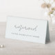Indiquez les places réservées à votre mariage ou à votre événement avec ce panneau élégant et moderne de tente de table avec "Réservé" en élégante écriture manuscrite, avec votre texte personnalisé sous. Couleur : Cendres, un noir doux.