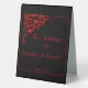 Un design mariage gothique foncé et romantique avec un feuillage rouge sang délicat. Personnalisez avec les noms de la mariée et du marié et la date.
