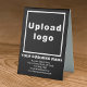 Signe de table que vous pouvez customiser pour mettre votre nom d'entreprise et d'autres informations de votre entreprise. Vous pouvez l'afficher sur votre bureau en tant que matériel de marketing pour annoncer votre entreprise ou pour promouvoir votre marque auprès de clients ou de clients. Signalisation personnalisable que vous pouvez utiliser pour sensibiliser la marque. Les couleurs design sont des textes blancs sur arrière - plan noir. Pour customiser ce panneau de tableau, téléchargez votre logo d'entreprise, tapez votre nom d'entreprise, votre adresse, votre numéro de téléphone, votre adresse e-mail et votre site Web ou votre page de médias sociaux. Veuillez vérifier l'apparence après avoir téléchargé le logo et tapé des textes. Si l'apparence vous plaît, vous pouvez passer votre commande maintenant. Si vous avez besoin de redimensionner et déplacer le logo et les textes pour s'adapter à ce panneau de table, s'il vous plaît changer dans l'outil de conception. Vous pouvez également effectuer d'autres modifications en fonction de l'apparence de ce panneau de tableau que vous préférez dans l'outil de conception, comme changer la couleur arrière - plan, la couleur de police et le style de police.