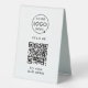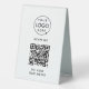 Un simple modèle de tente de table double face d'entreprise sur mesure dans un style minimaliste moderne qui peut être facilement mis à jour avec le logo de votre entreprise, le code QR et personnalisé