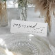 This modern reserved sign features the word “reserved” in elegant handwritten script with a simple heart accent for a refined, romantic touch. Designed to coordinate with black and white wedding table cards, this self-standing tent sign can be personalized with text such as “for the bride’s family” or any custom message. A beautiful way to style your reception seating with modern minimalist typography and elegant simplicity.