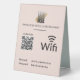 Ce panneau de table fait tellement pour votre entreprise. Il donne au client le réseau et le code de mot de passe à votre Wifi. Ils peuvent le faire en analysant le code QR ou en ajoutant manuellement le mot de passe et le nom du réseau. Il a votre logo et votre nom d'entreprise en haut, ce qui augmente la notoriété de la marque. Il est sur un arrière - plan rose vif et est imprimé de chaque côté.