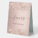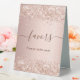 Un arrière - plan d'or rose aux confettis. Favors est écrit avec un script de style moderne écrit à la main avec des swashes.