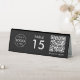 Un simple code QR noir reuraunt ou table de café numéro de table de tente double face signe d'entreprise modèle dans un style moderne minimaliste qui peut être facilement mis à jour avec le logo de votre entreprise, le code QR et le texte personnalisé.