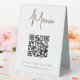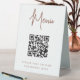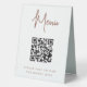 Faites en sorte qu'il soit facile à vos invités de mariage ou d'événement de voir vos sélections de menu avec ce panneau de table de code QR. "Menu" apparaît en haut, avec de brèves instructions en dessous. Entrez l'URL de votre menu et le code QR sera mis à jour. Les clients peuvent scanner le code avec leur téléphone pour voir les sélections de menu.