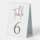 Des tentes simples et chic font une déclaration élégante à votre mariage ou événement. Le design comporte "table" en écriture manuscrite, avec la table en dessous dans la typographie serif intemporelle. Le design se répète sur le dos. Coloris : Rouille, un ton terre chaud couleur terre-cuite brun.