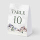A beautiful table number card for your rustic winter wedding tables with a snow covered mountain scene.