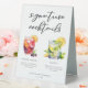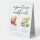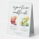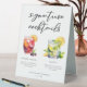 Ce panneau de tente de table de cocktails chic et design présente une typographie noire personnalisée au-dessus de 2 boissons et leurs ingrédients pour votre bar mariage. Un joli dessin de Sangria et Mojito d'été ajoute une touche cool à votre menu de bar. Complétez avec les noms du couple et la date de leur réception.