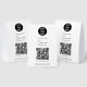 A modern business paper table tent sign design showcasing your business logo, business qr code, business website and social media handle as well as contactless menu or ordering option. A minimalist personalized scan to pay QR code, business logo and social media business table tent signs. A simple and professional way to allow your customers to scan, pay, view menus, price lists etc. Customize the text and make it your own..